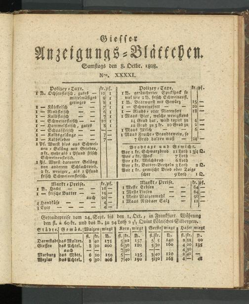 Giesser Anzeigeblatt. 1800-1839