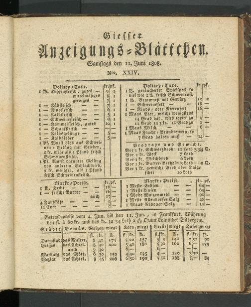Giesser Anzeigeblatt. 1800-1839