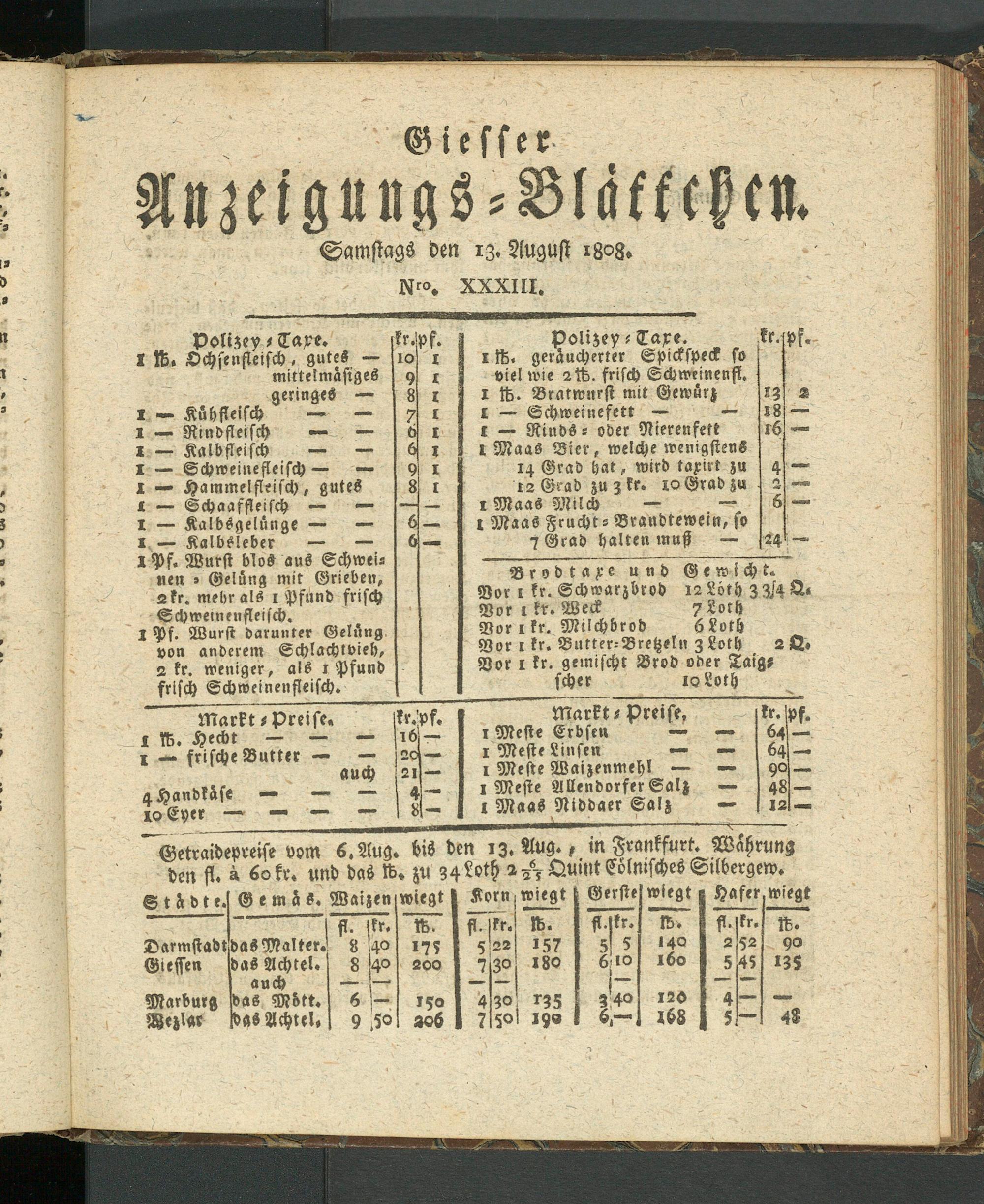 Giesser Anzeigeblatt. 1800-1839