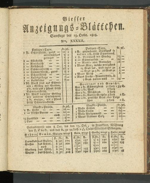 Giesser Anzeigeblatt. 1800-1839