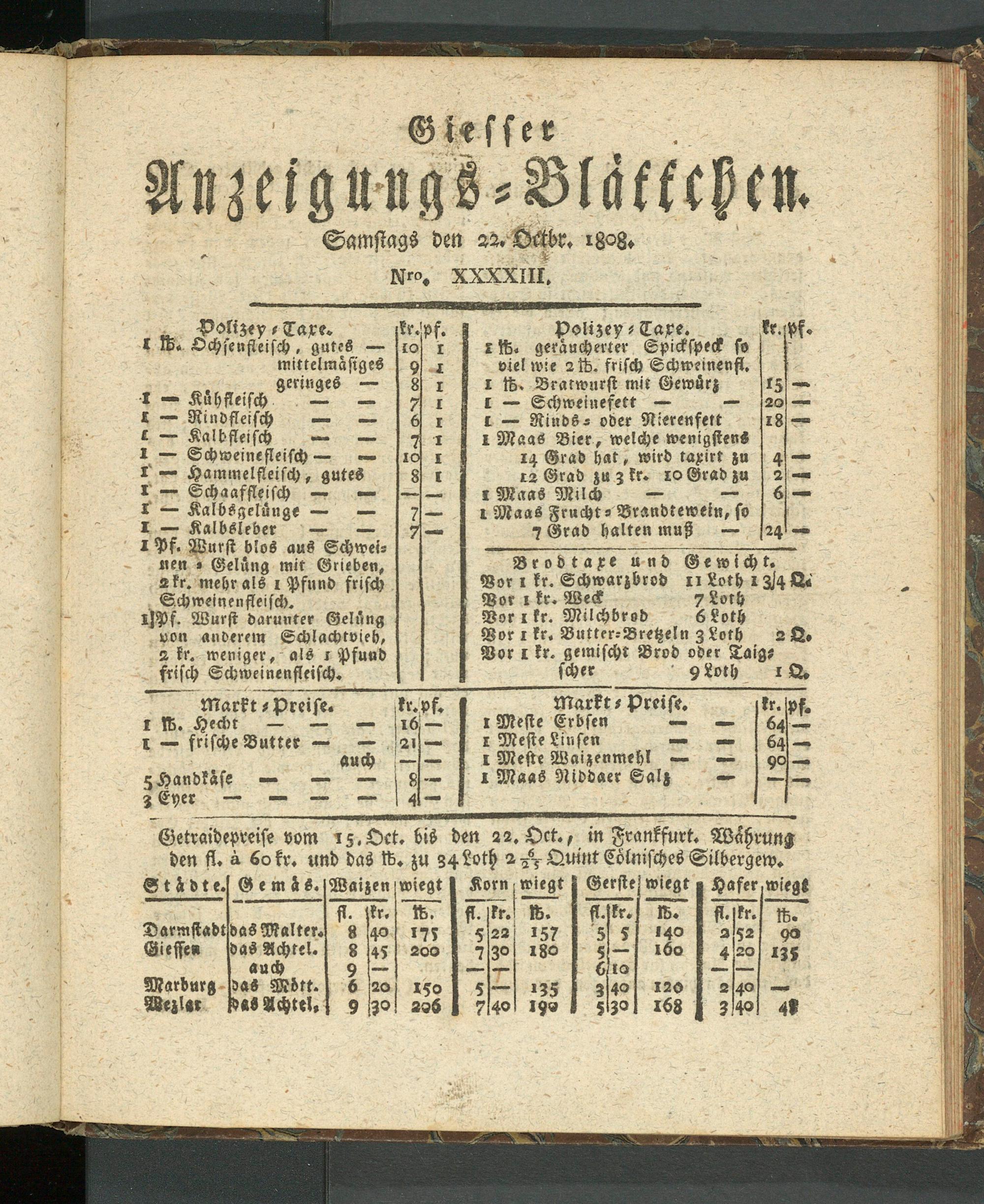 Giesser Anzeigeblatt. 1800-1839