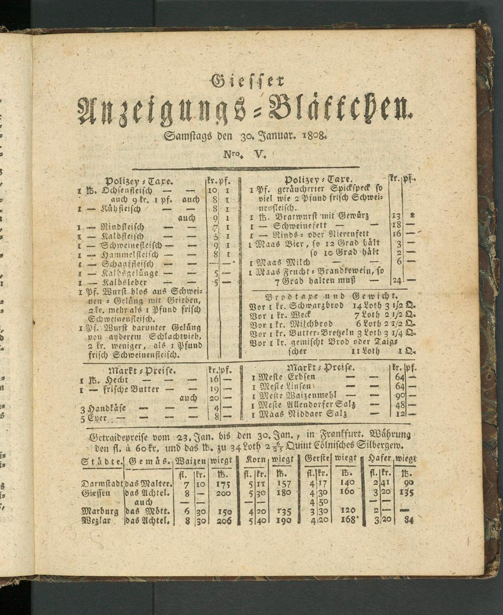 Giesser Anzeigeblatt. 1800-1839