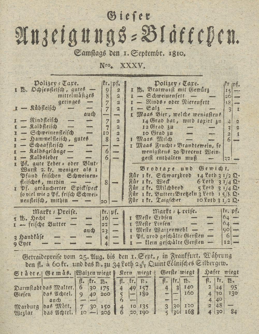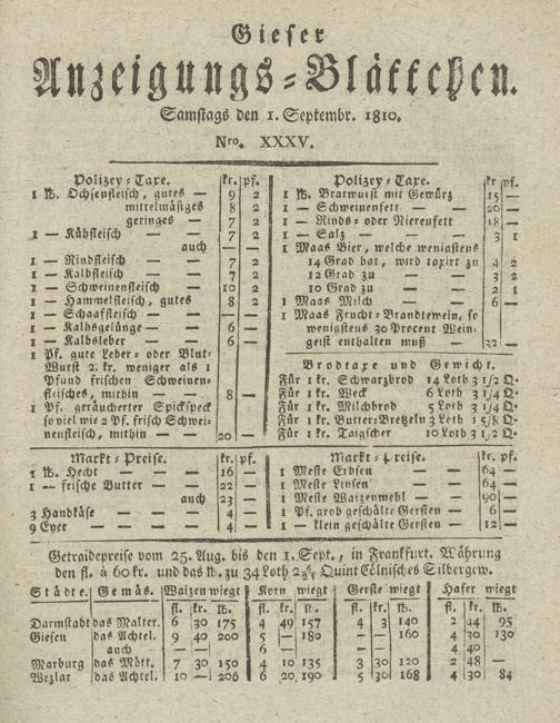 Giesser Anzeigeblatt. 1800-1839