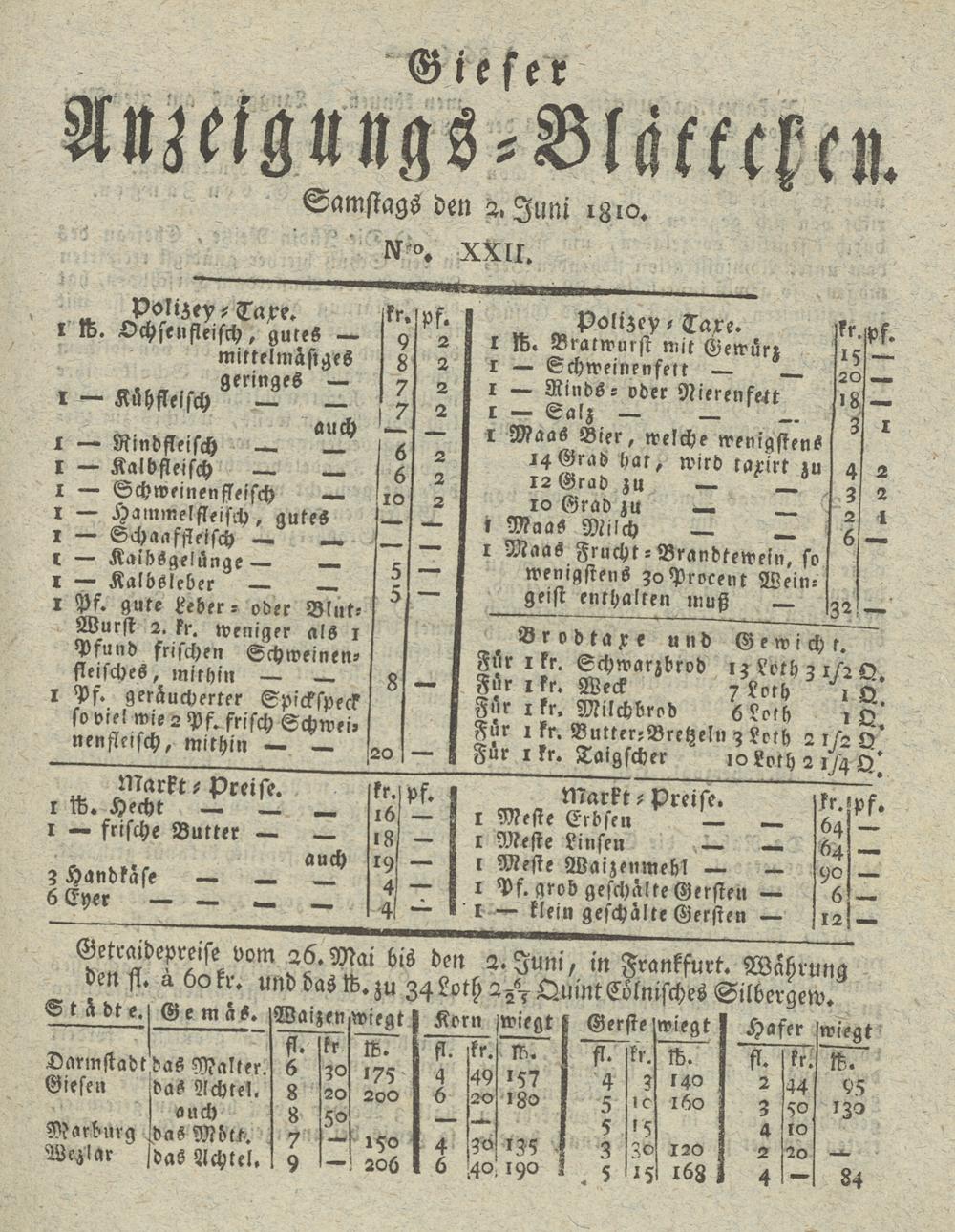 Giesser Anzeigeblatt. 1800-1839