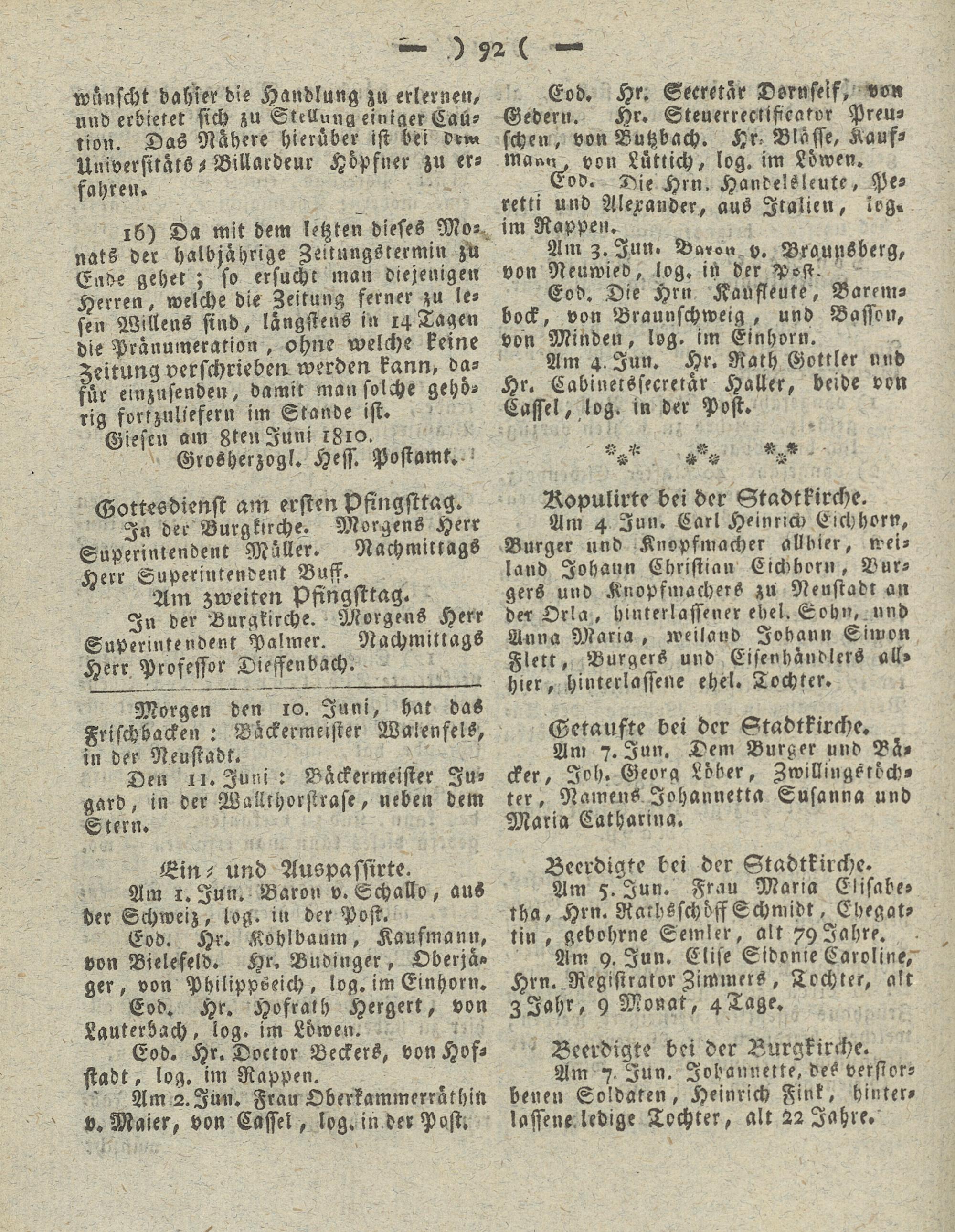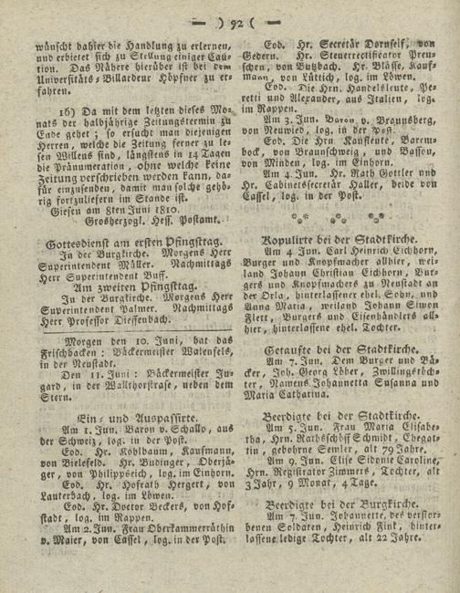 Giesser Anzeigeblatt. 1800-1839