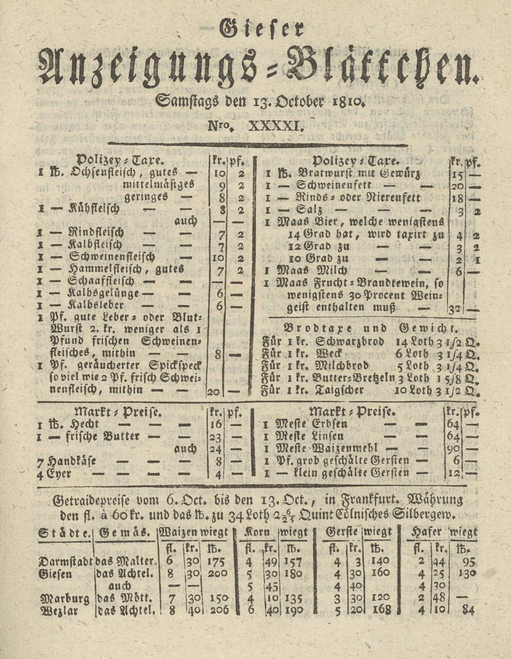 Giesser Anzeigeblatt. 1800-1839