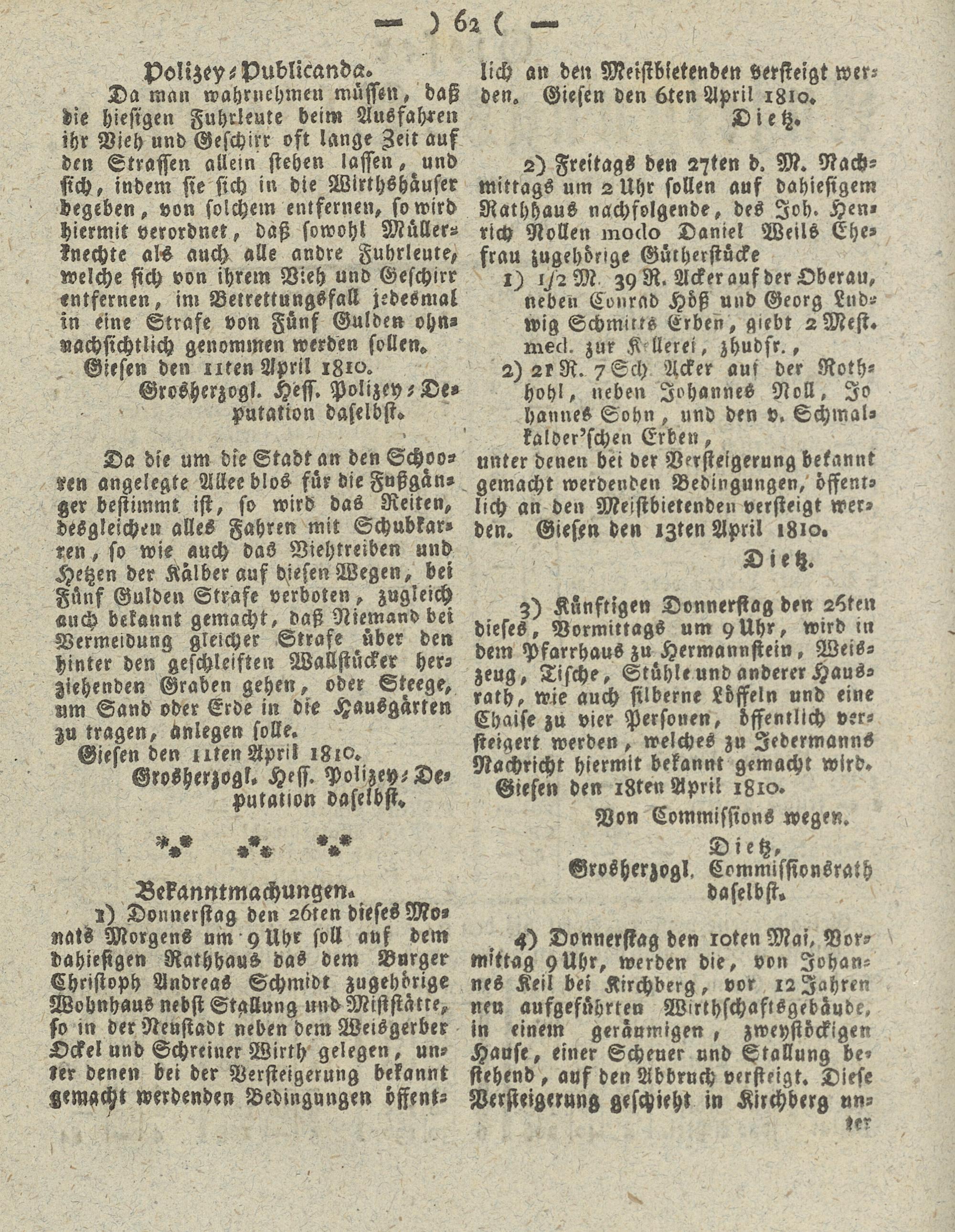 Giesser Anzeigeblatt. 1800-1839