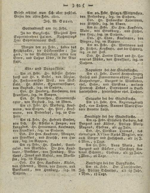 Giesser Anzeigeblatt. 1800-1839