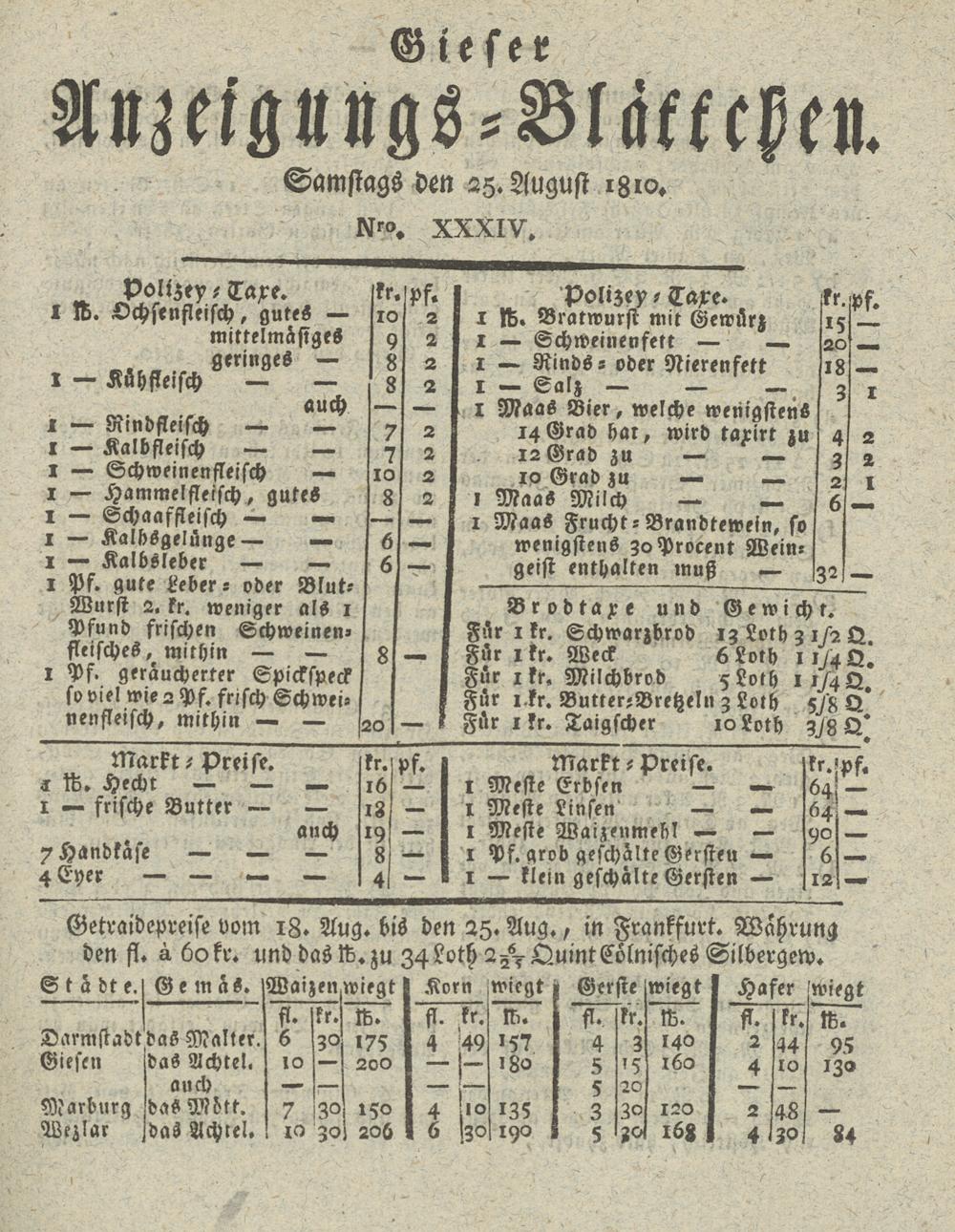Giesser Anzeigeblatt. 1800-1839
