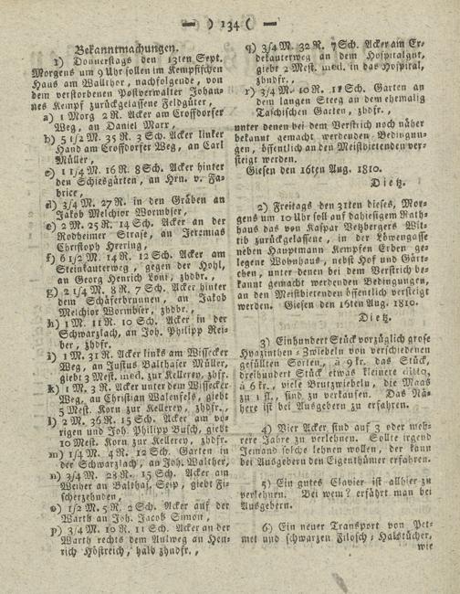 Giesser Anzeigeblatt. 1800-1839