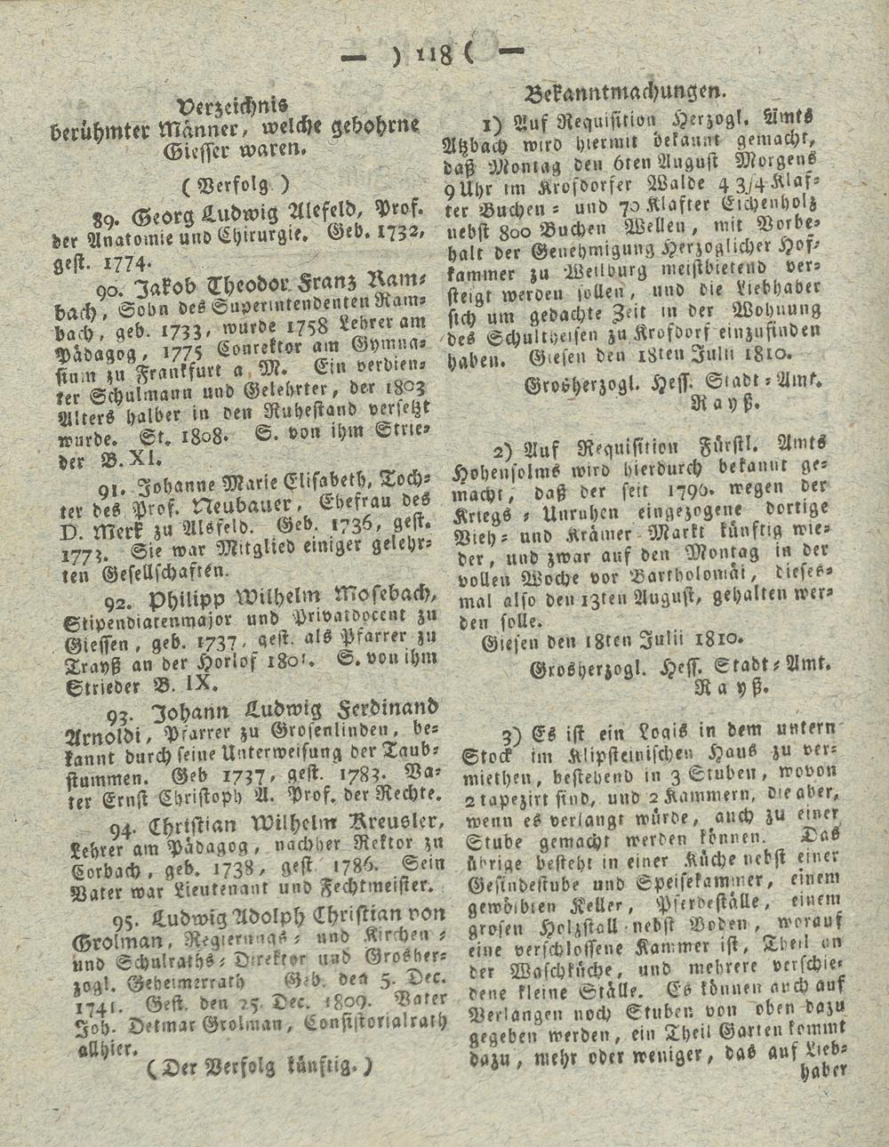 Giesser Anzeigeblatt. 1800-1839
