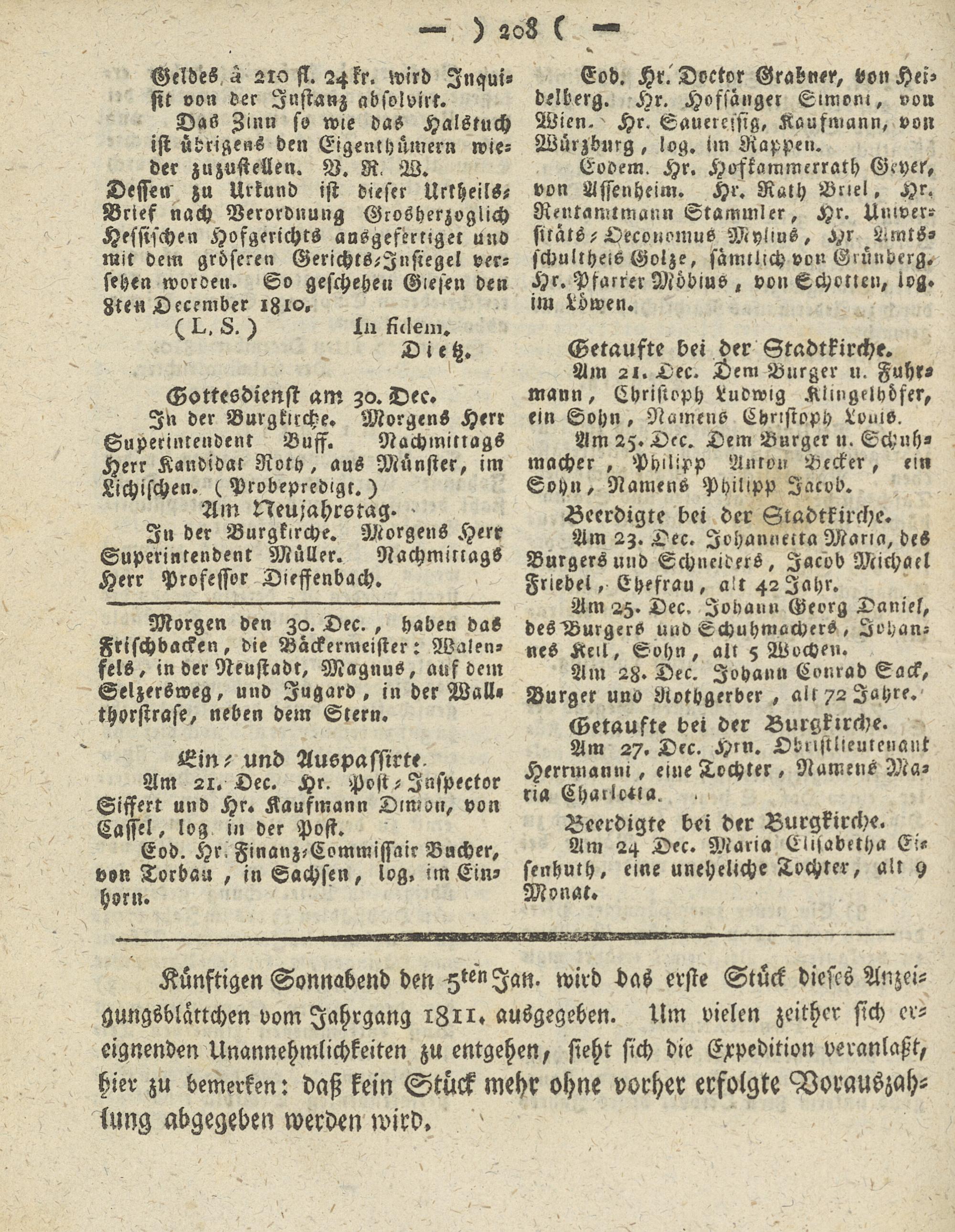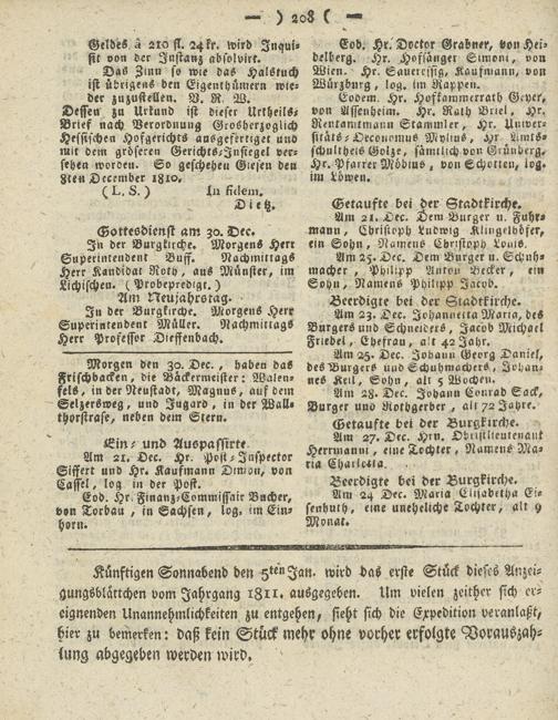 Giesser Anzeigeblatt. 1800-1839