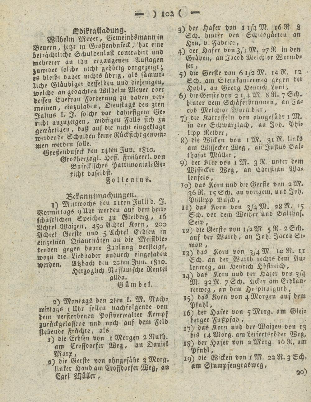Giesser Anzeigeblatt. 1800-1839