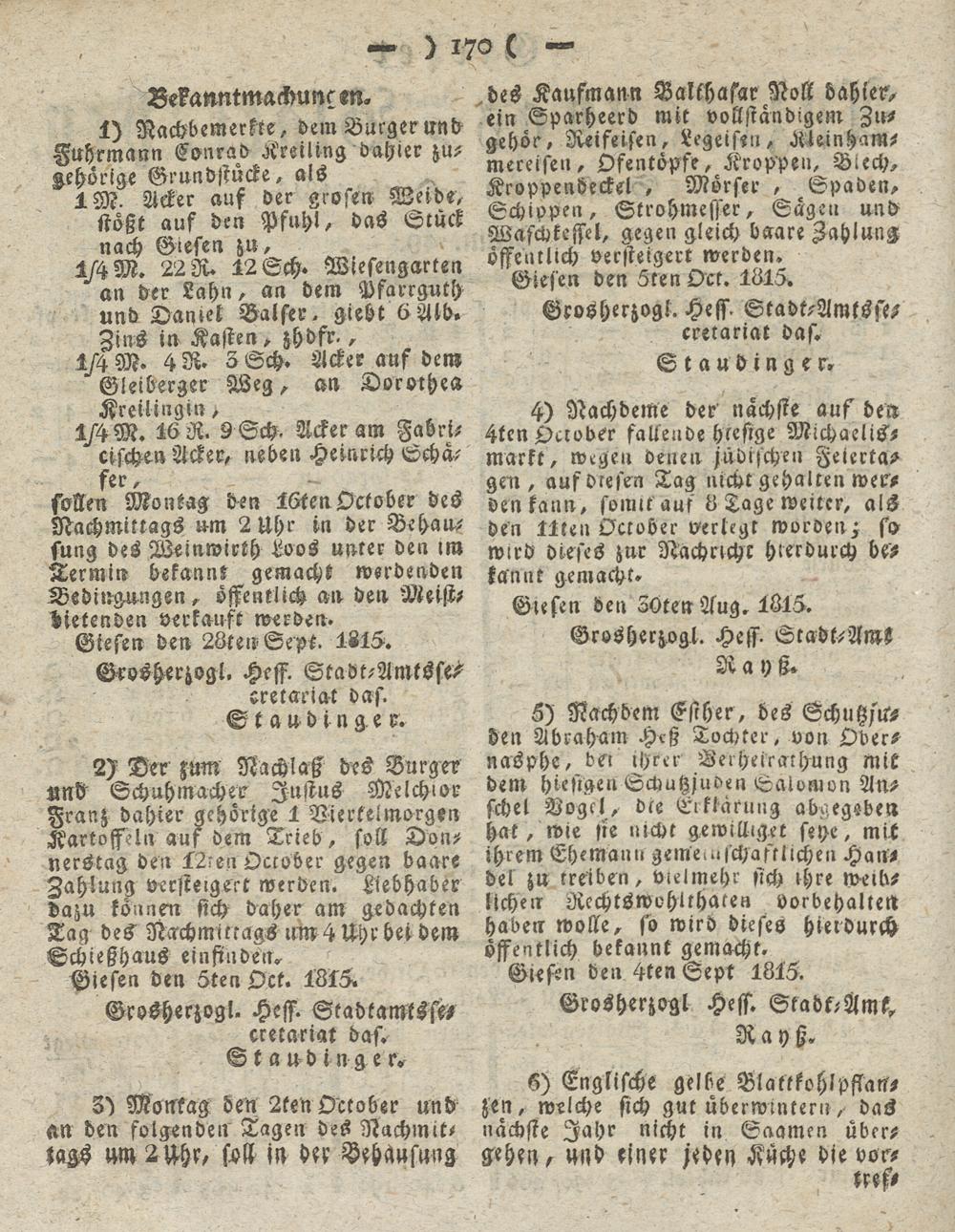 Giesser Anzeigeblatt. 1800-1839