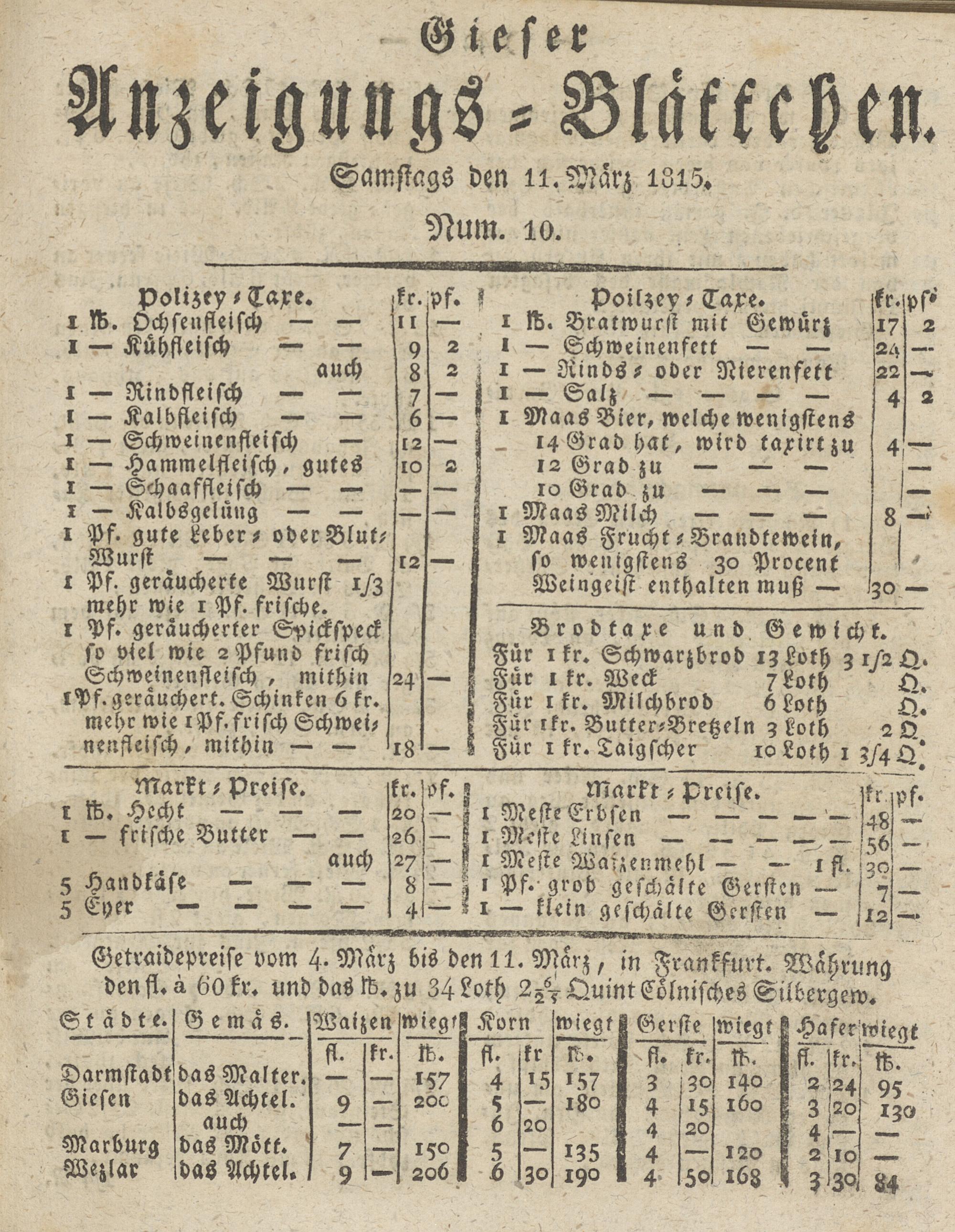 Giesser Anzeigeblatt. 1800-1839