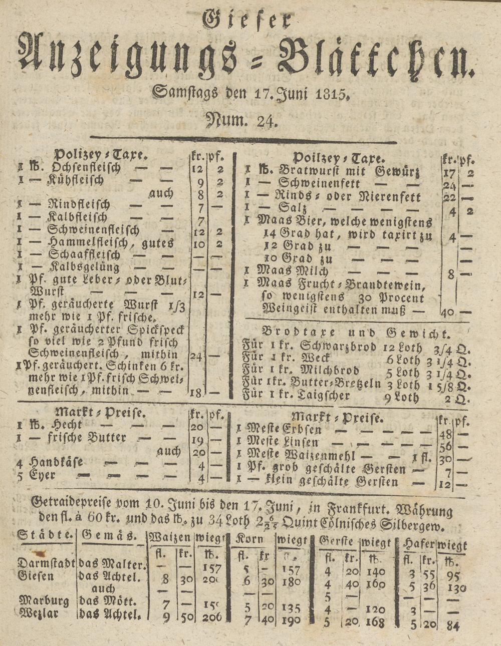 Giesser Anzeigeblatt. 1800-1839