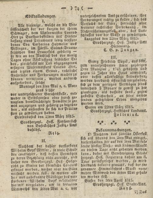 Giesser Anzeigeblatt. 1800-1839