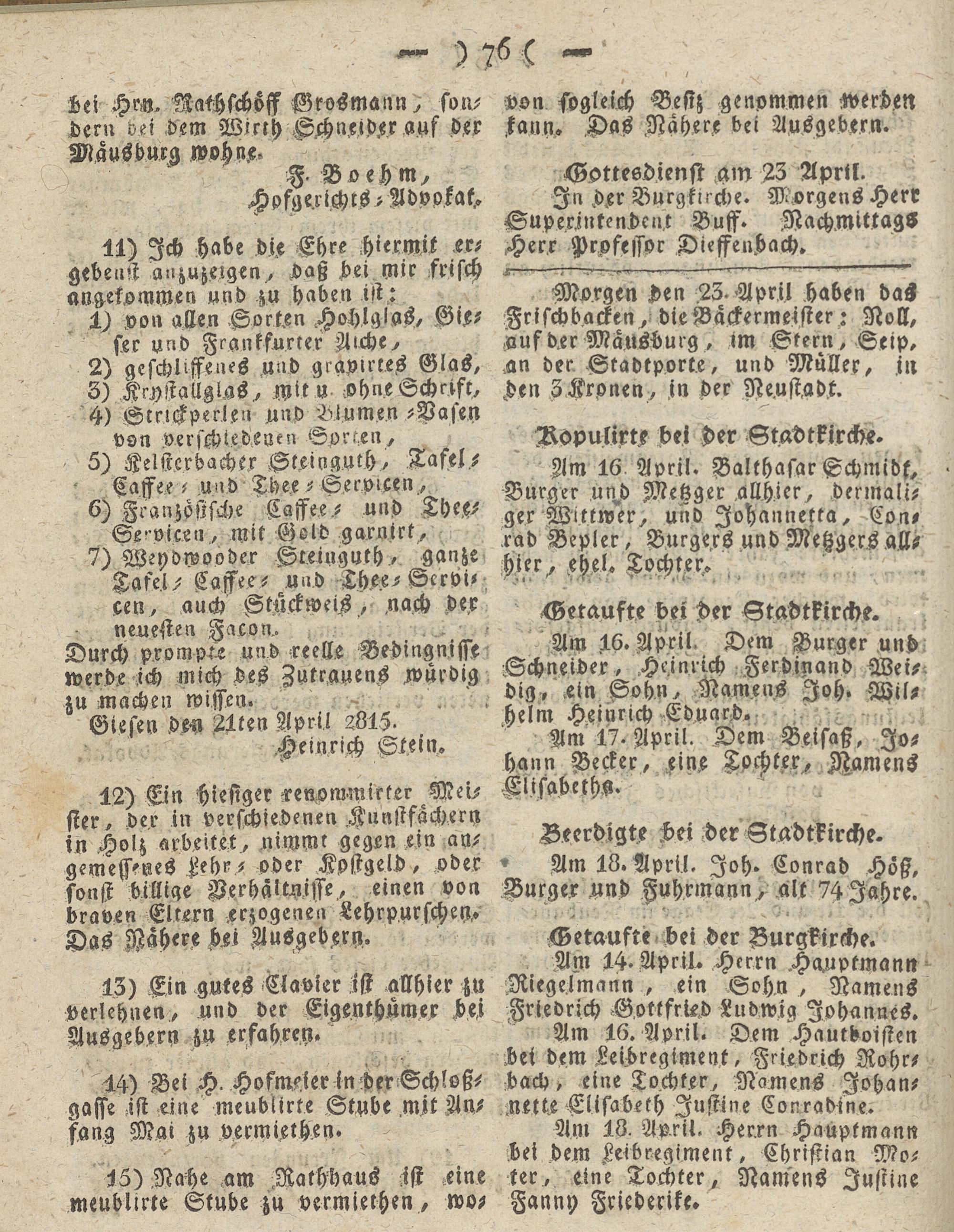 Giesser Anzeigeblatt. 1800-1839