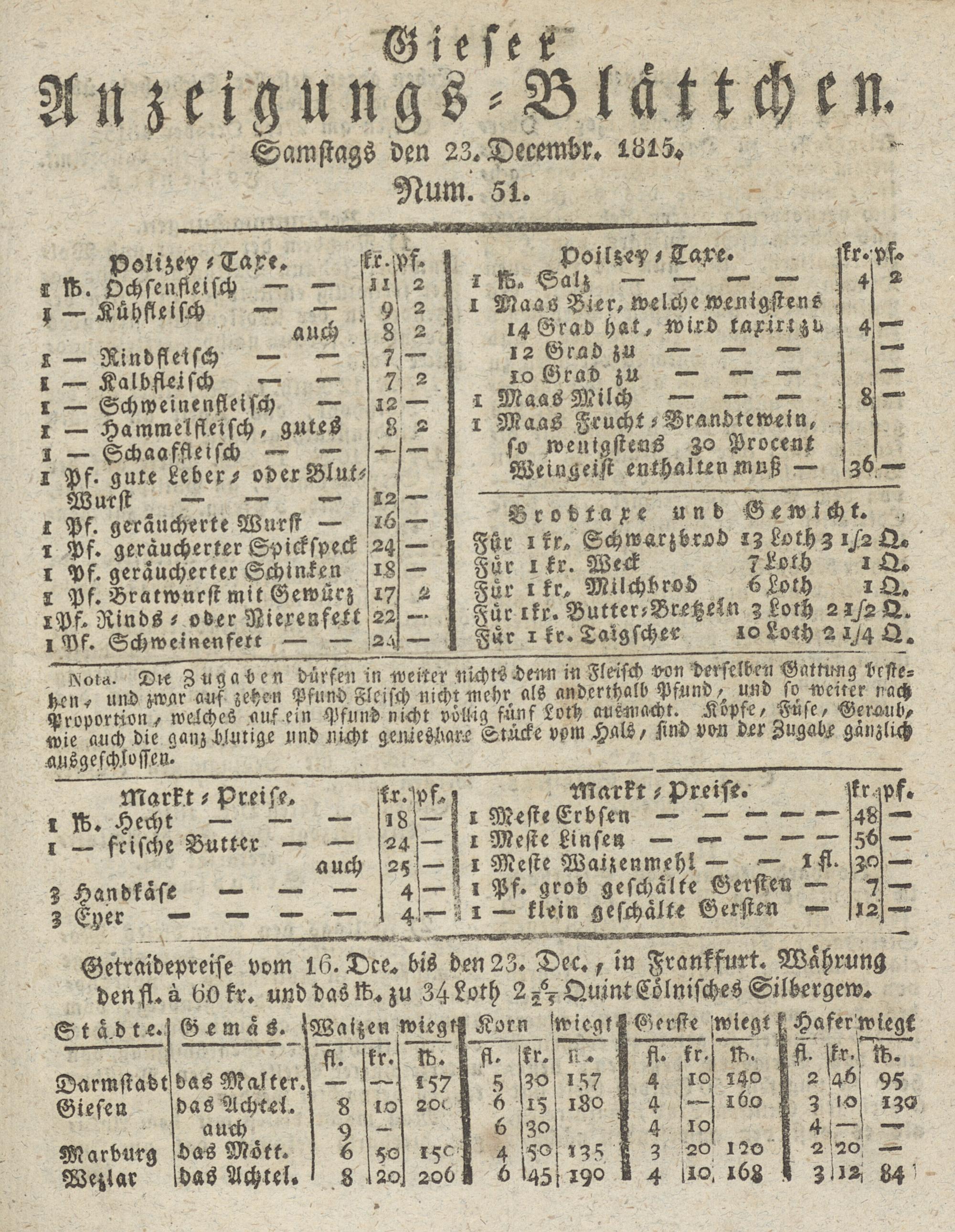 Giesser Anzeigeblatt. 1800-1839