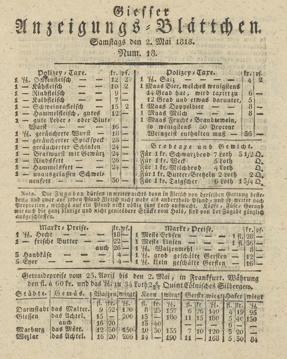Giesser Anzeigeblatt. 1800-1839
