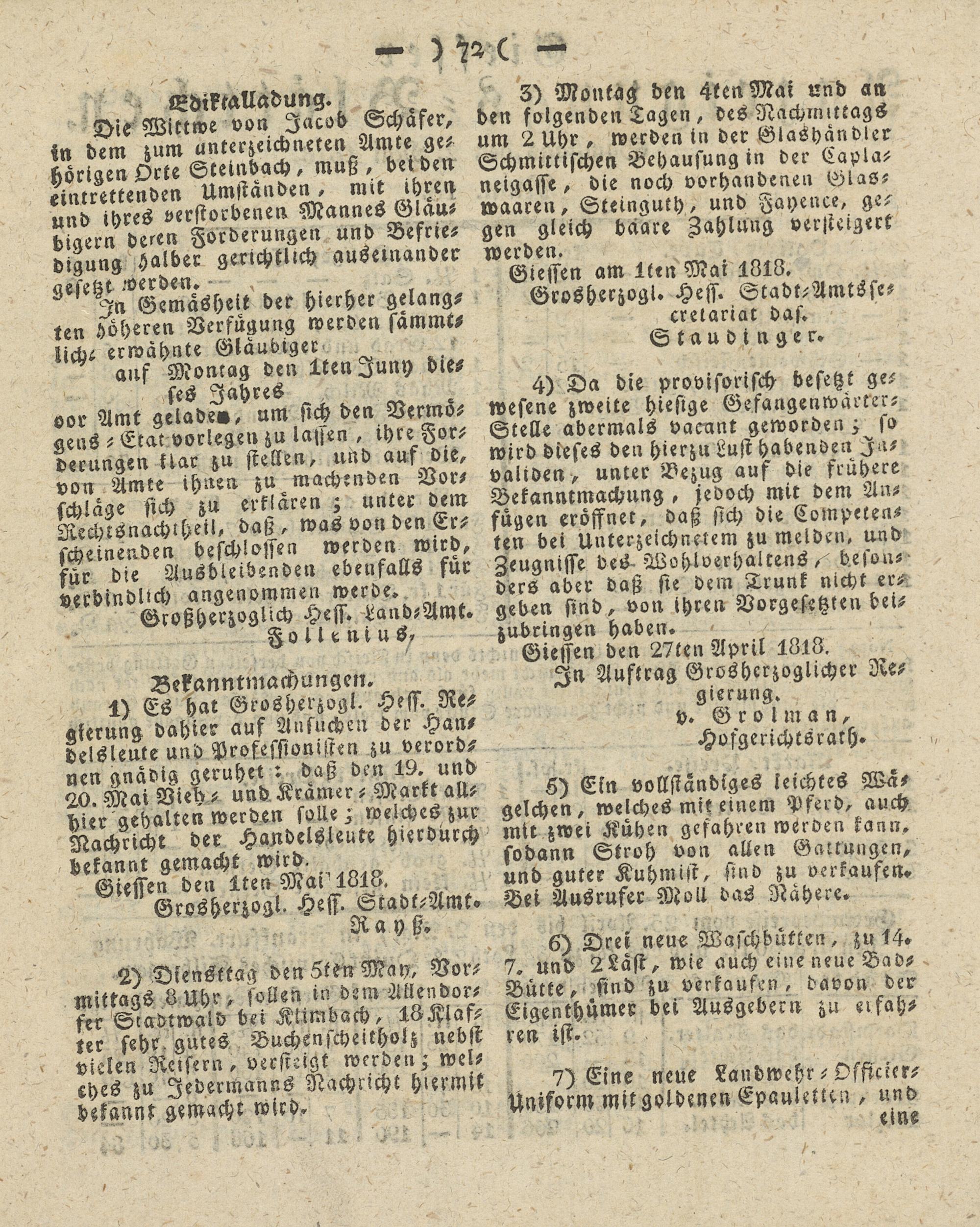 Giesser Anzeigeblatt. 1800-1839