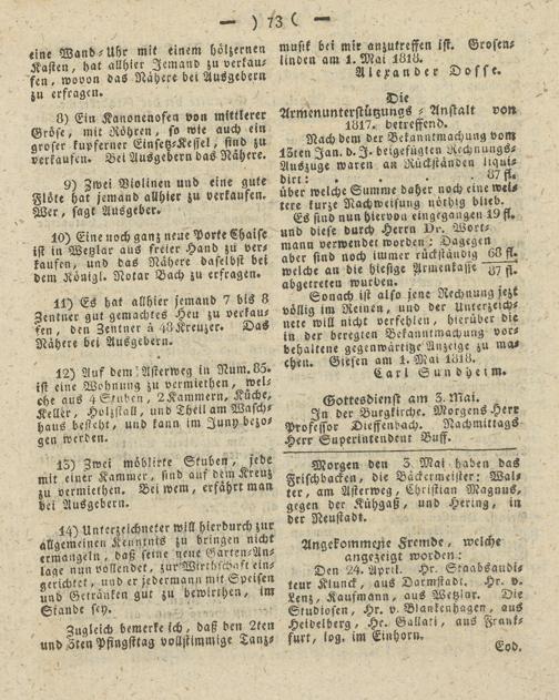 Giesser Anzeigeblatt. 1800-1839