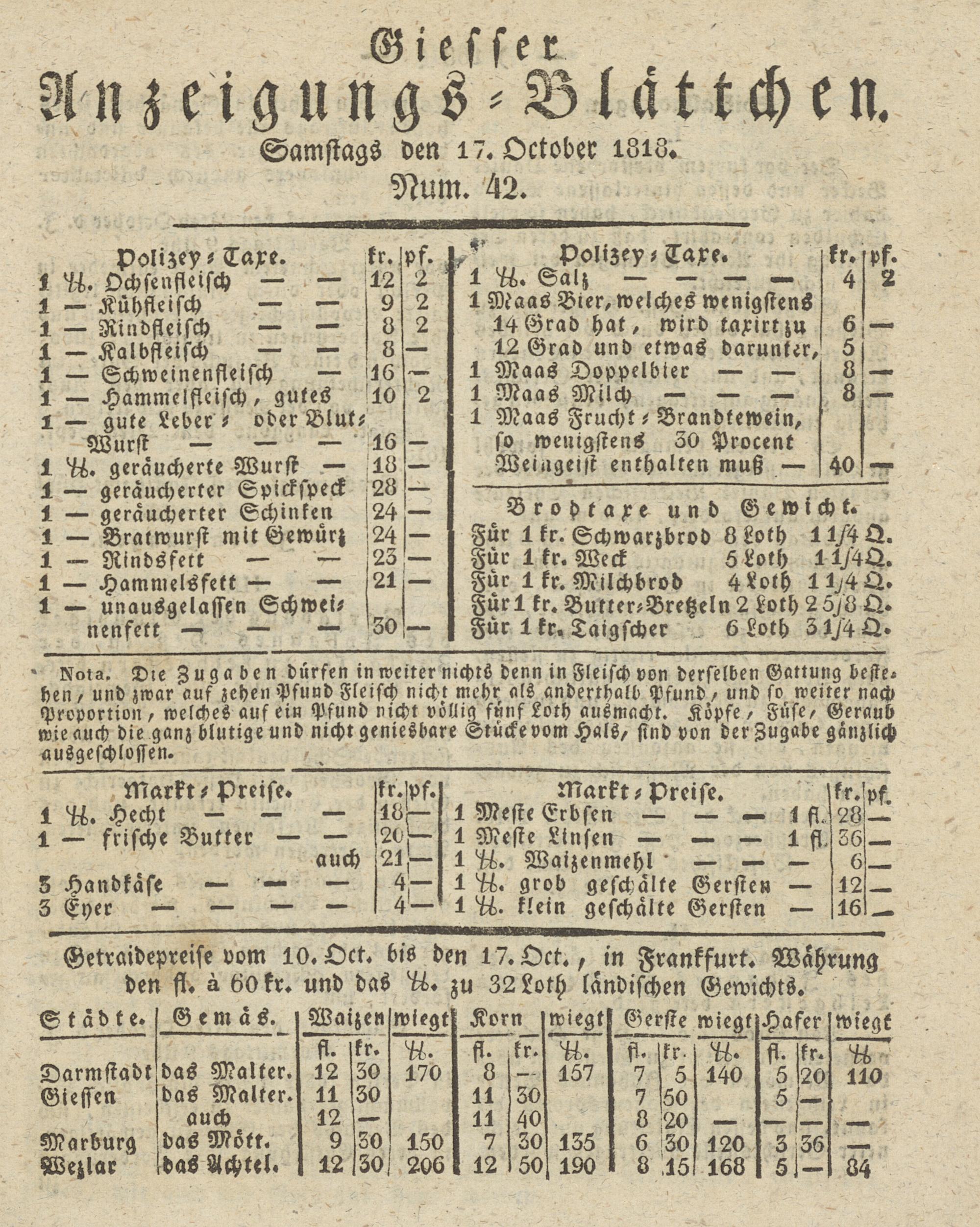 Giesser Anzeigeblatt. 1800-1839
