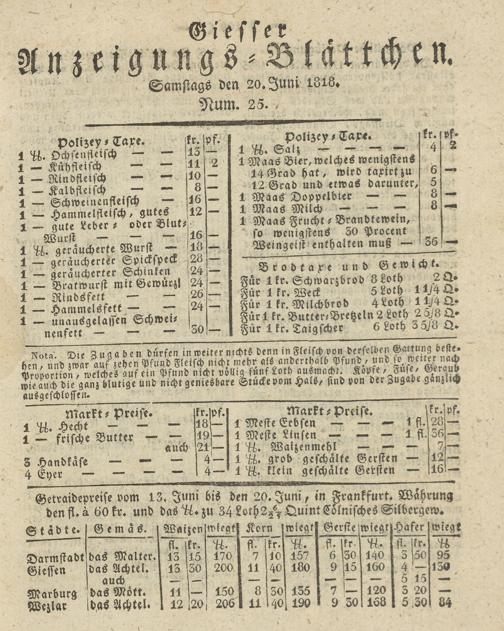 Giesser Anzeigeblatt. 1800-1839