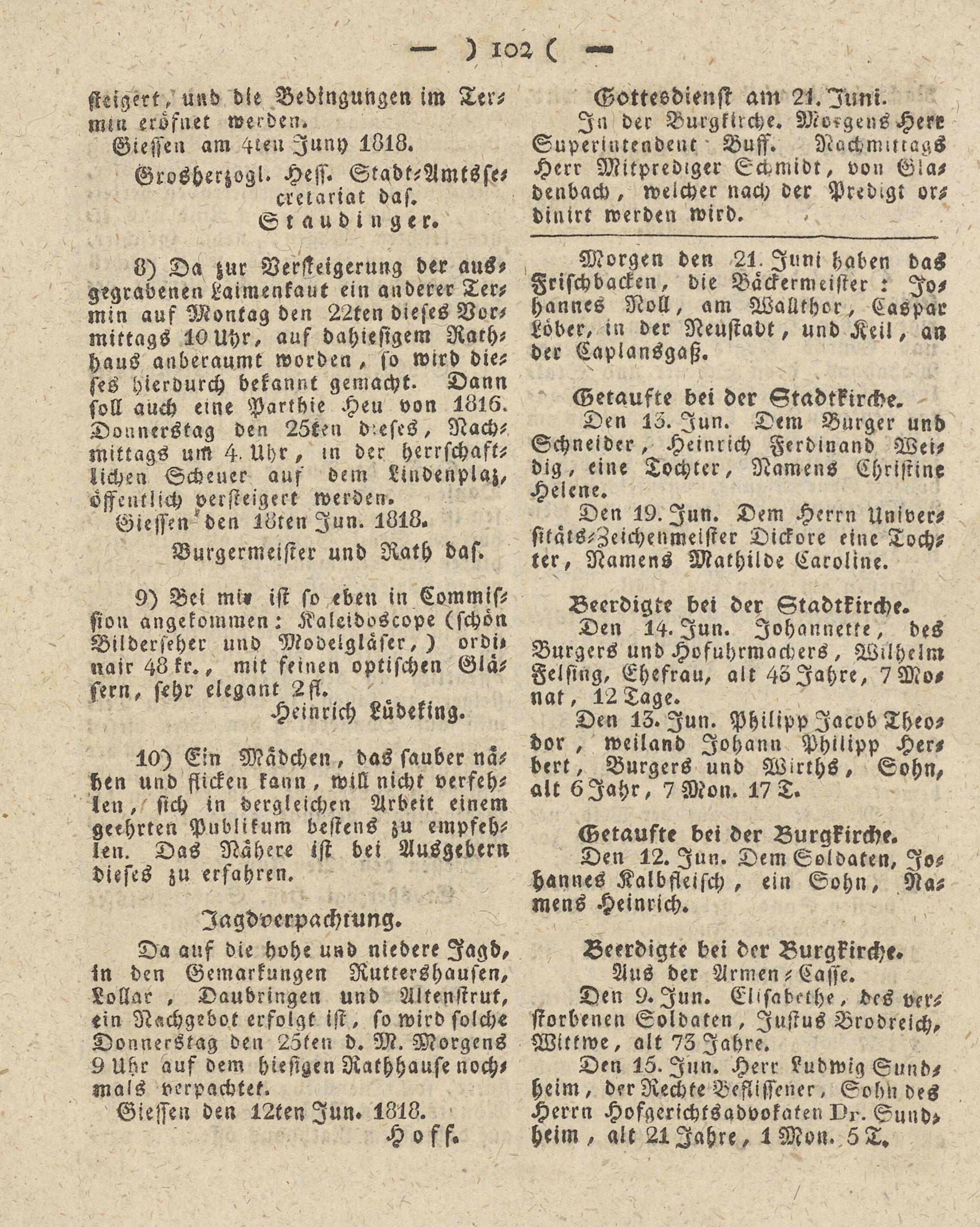 Giesser Anzeigeblatt. 1800-1839