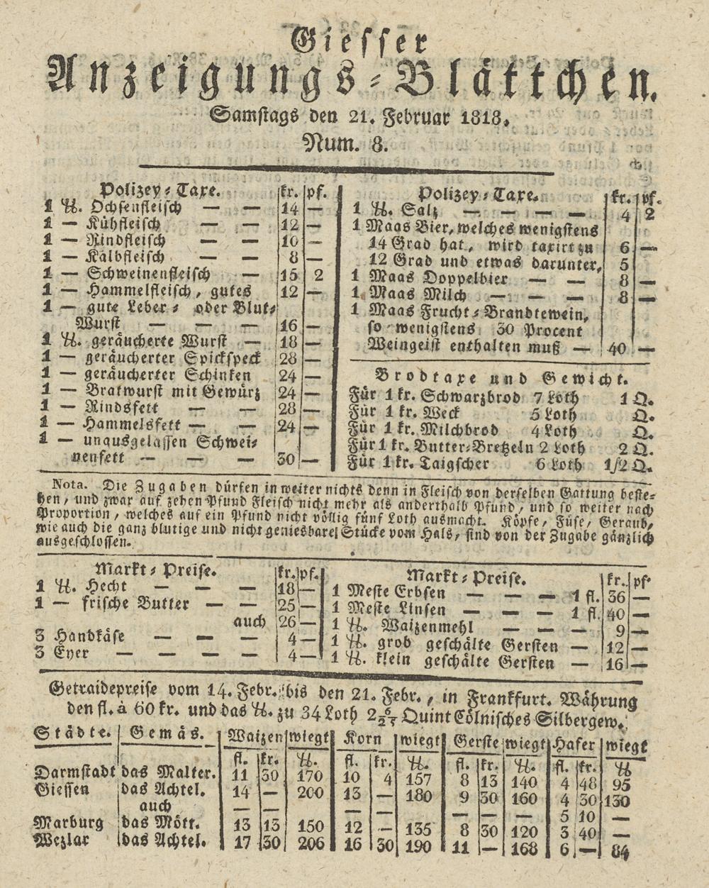 Giesser Anzeigeblatt. 1800-1839