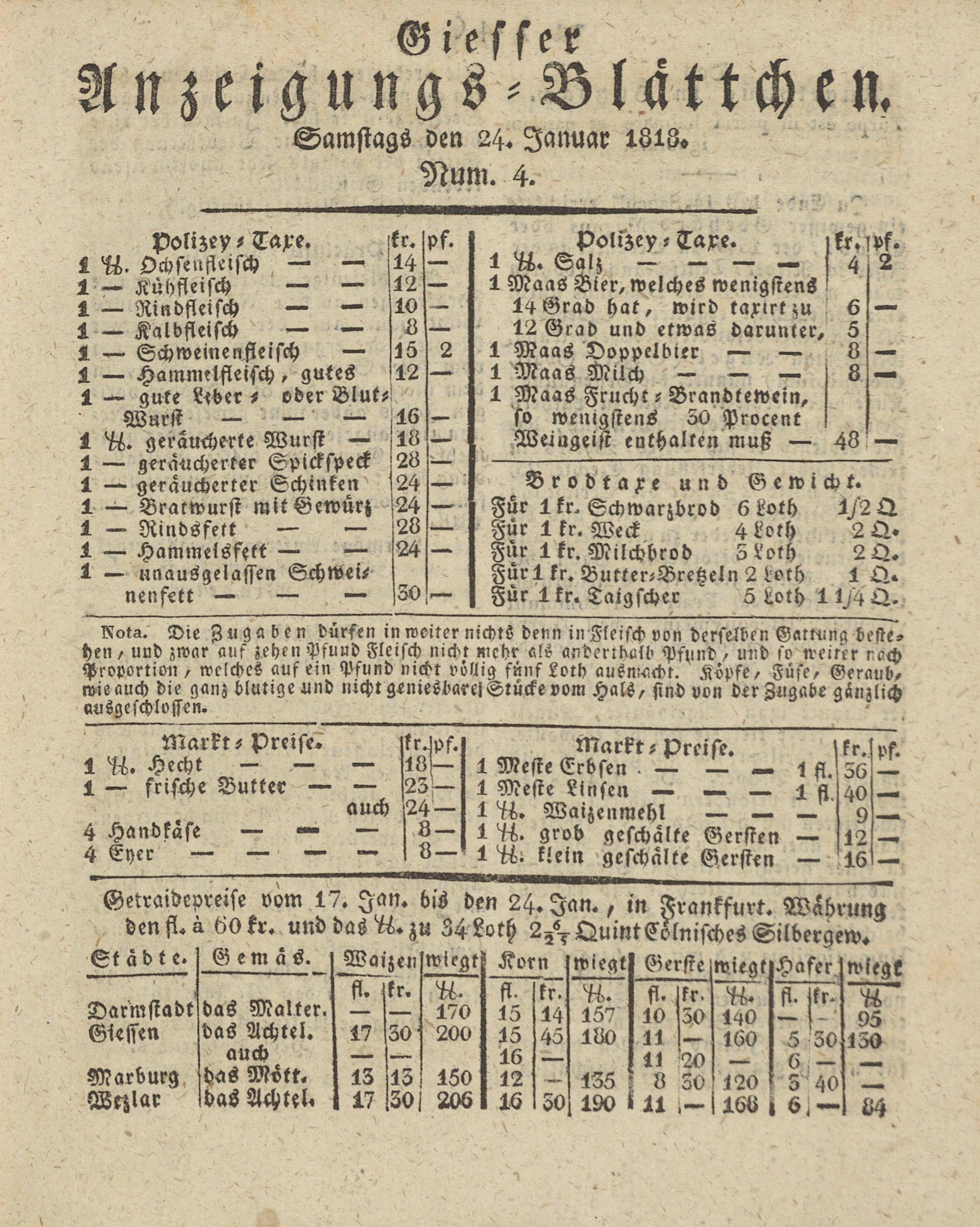 Giesser Anzeigeblatt. 1800-1839