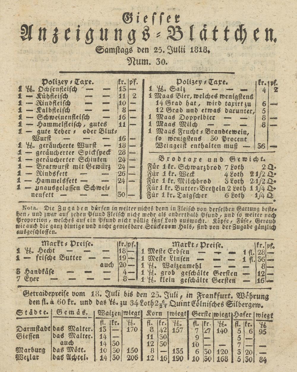 Giesser Anzeigeblatt. 1800-1839