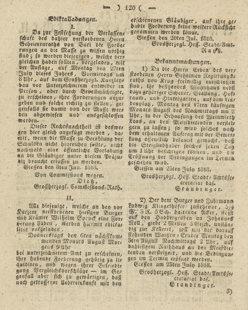 Giesser Anzeigeblatt. 1800-1839