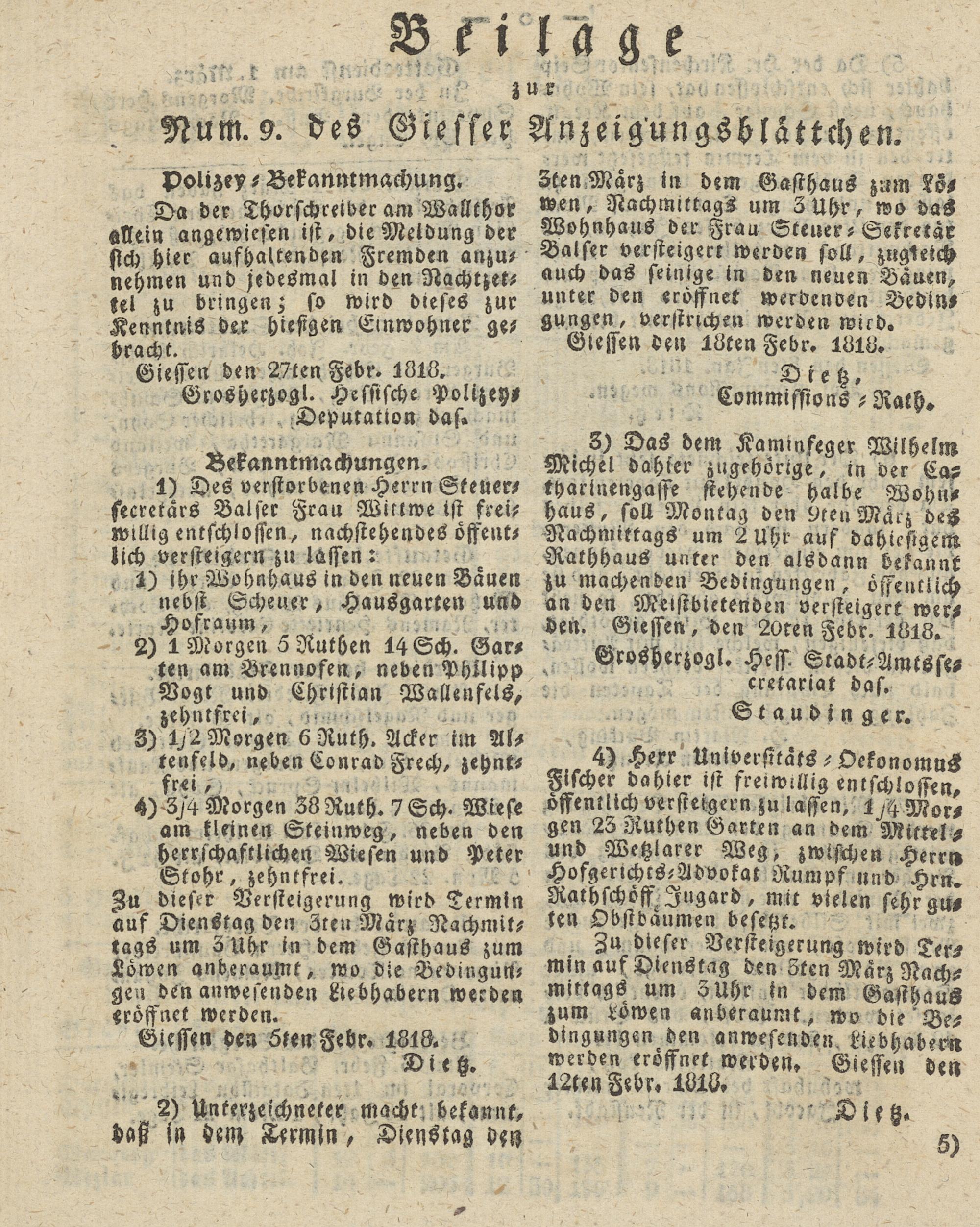Giesser Anzeigeblatt. 1800-1839