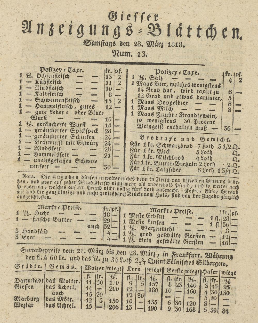Giesser Anzeigeblatt. 1800-1839
