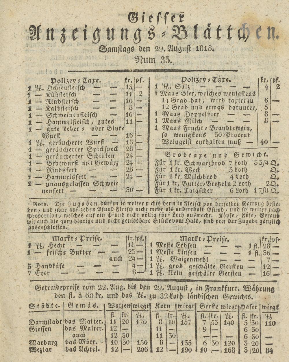 Giesser Anzeigeblatt. 1800-1839