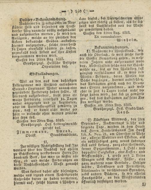 Giesser Anzeigeblatt. 1800-1839