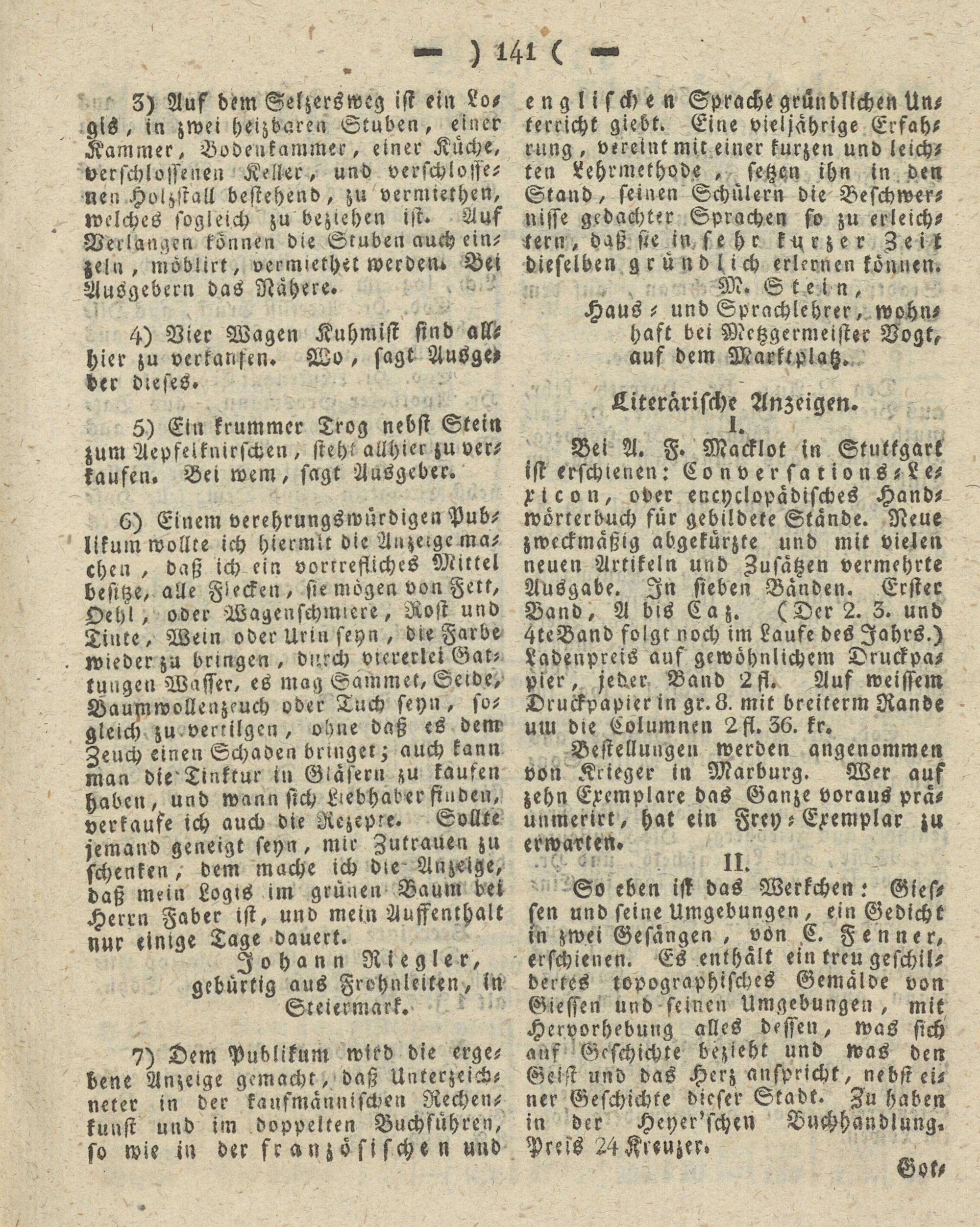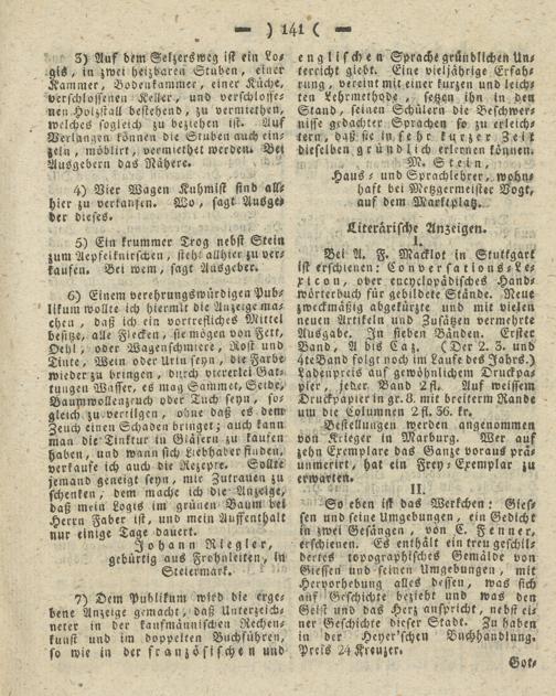 Giesser Anzeigeblatt. 1800-1839