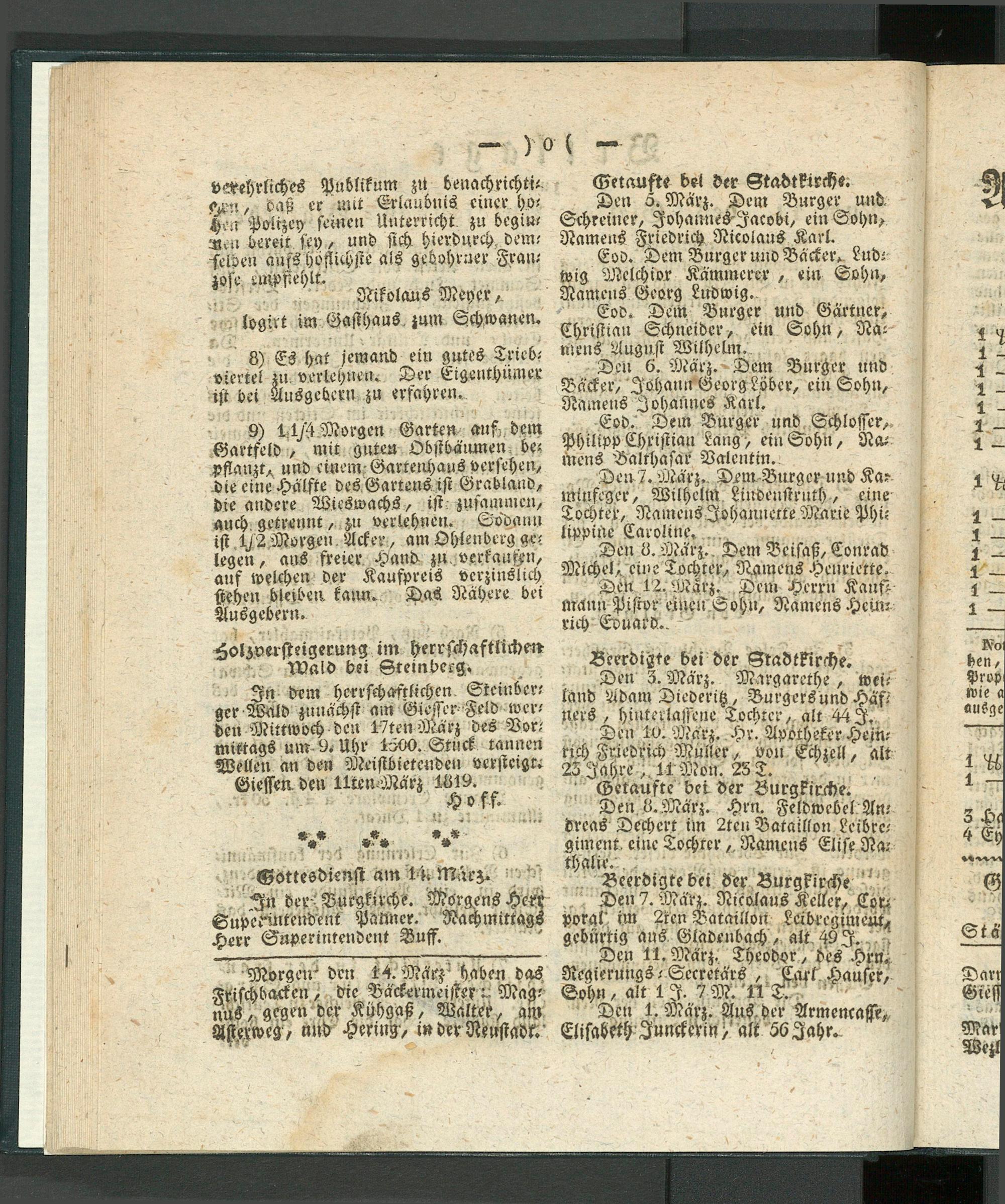 Giesser Anzeigeblatt. 1800-1839