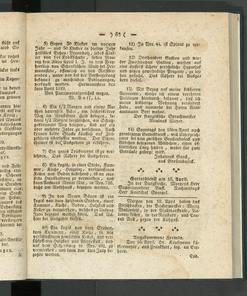 Giesser Anzeigeblatt. 1800-1839