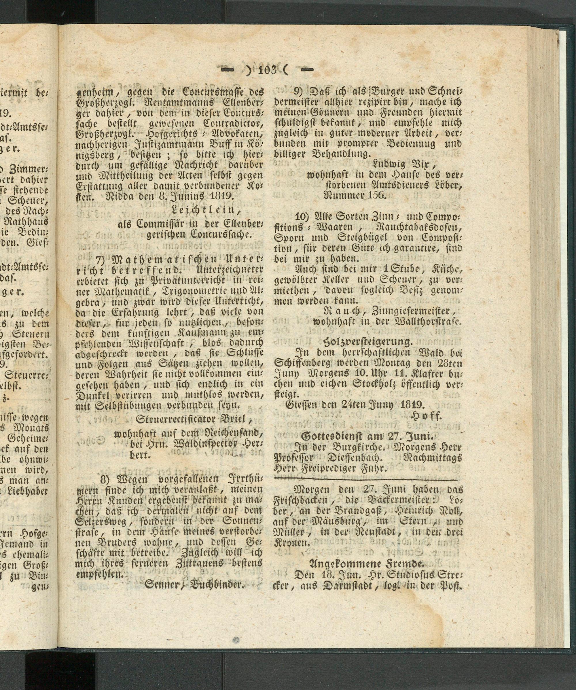 Giesser Anzeigeblatt. 1800-1839