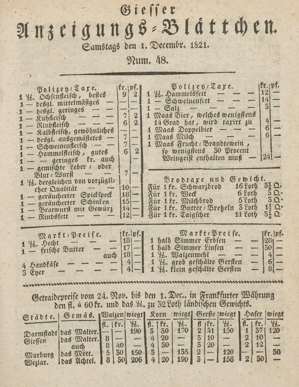 Giesser Anzeigeblatt. 1800-1839