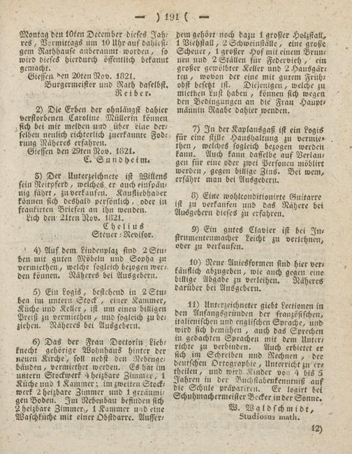 Giesser Anzeigeblatt. 1800-1839
