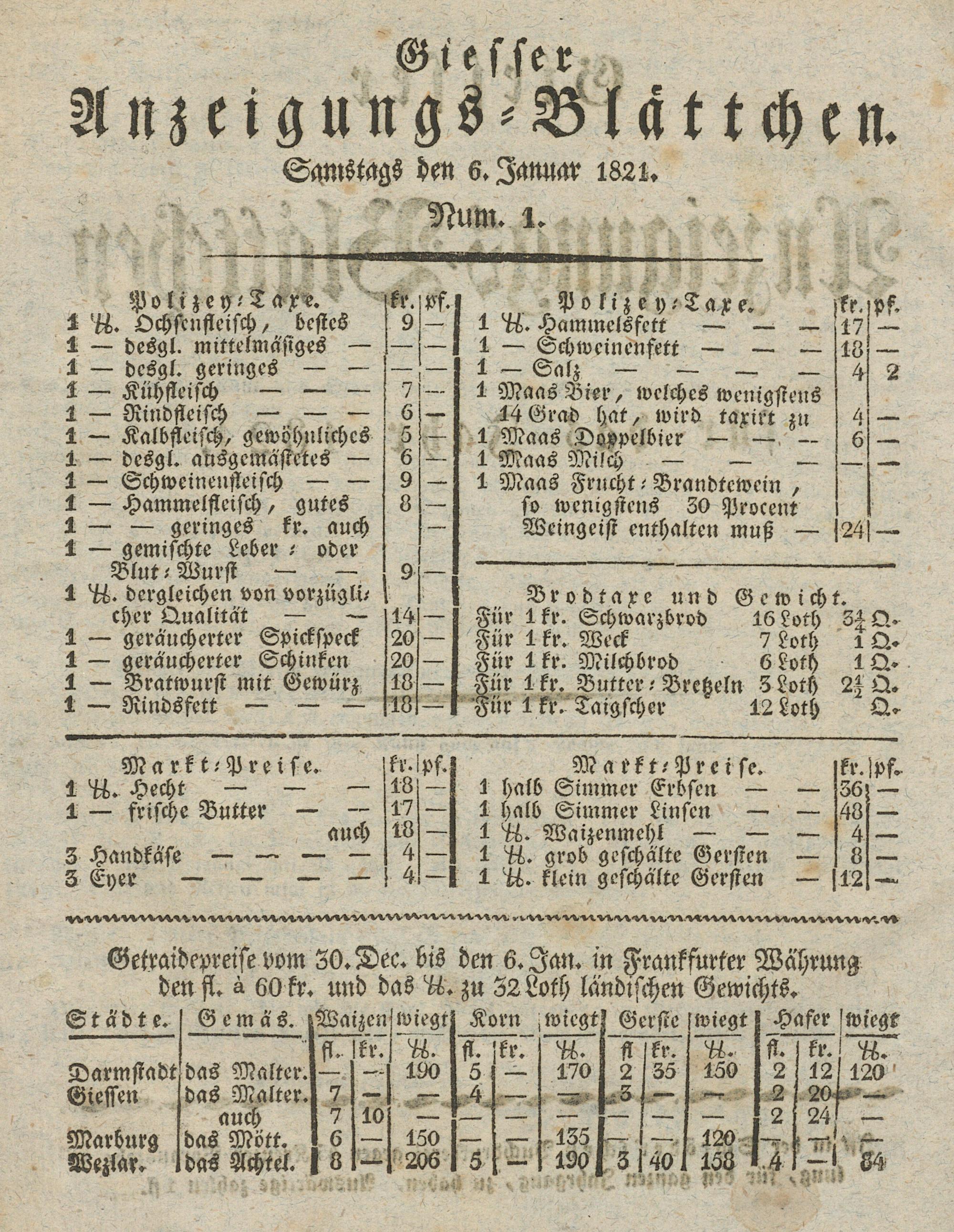 Giesser Anzeigeblatt. 1800-1839