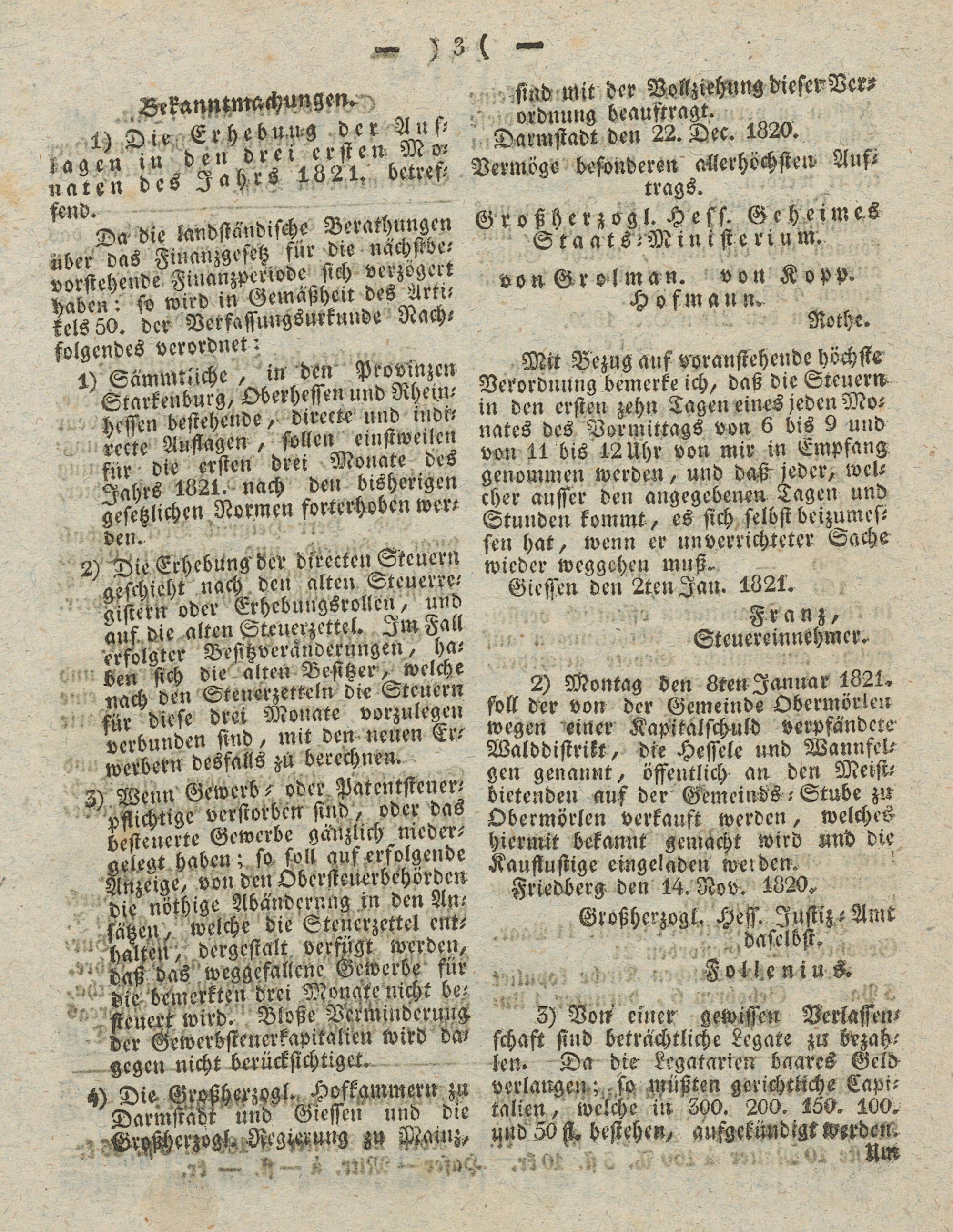Giesser Anzeigeblatt. 1800-1839