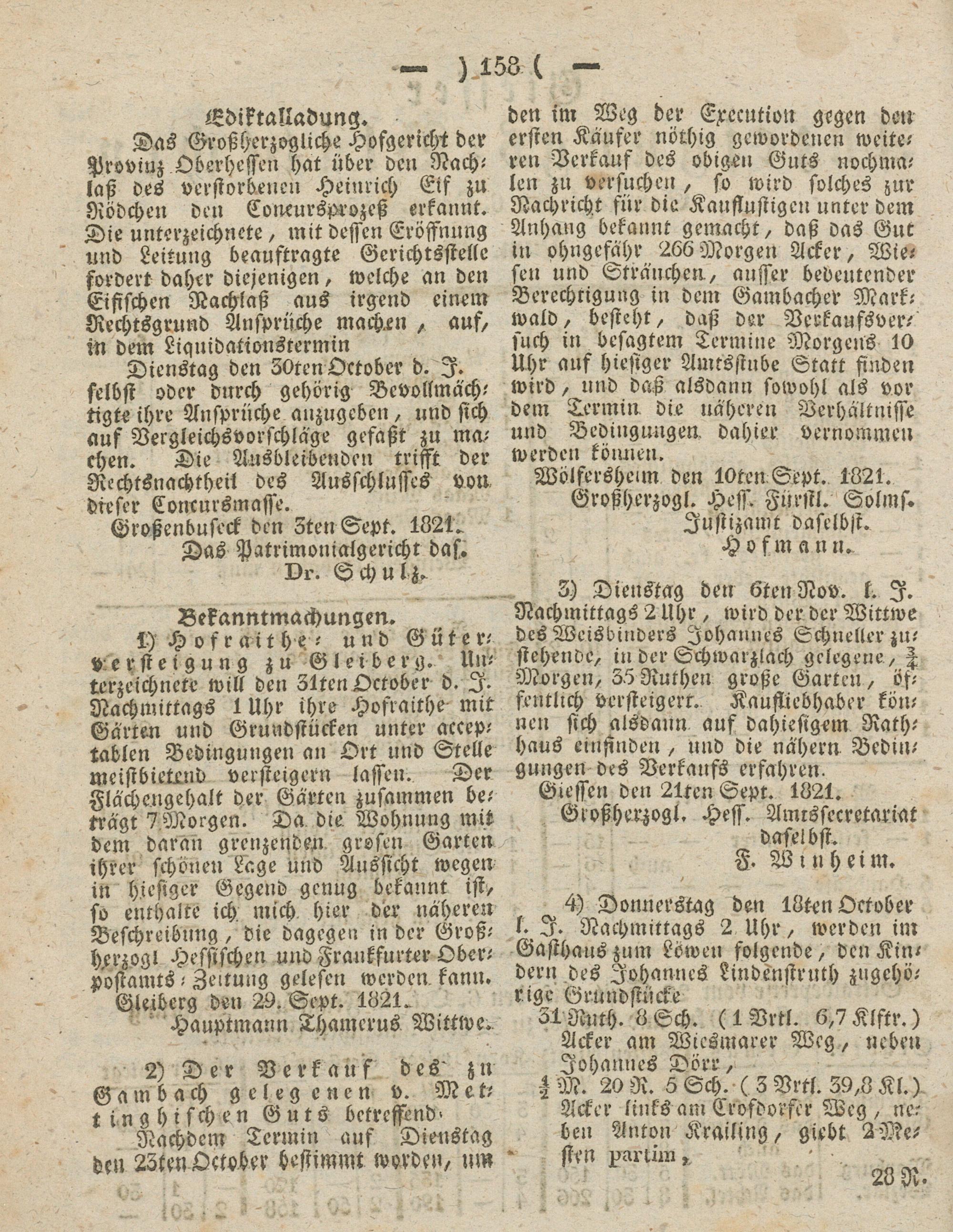 Giesser Anzeigeblatt. 1800-1839