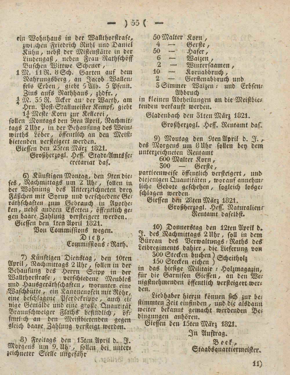 Giesser Anzeigeblatt. 1800-1839