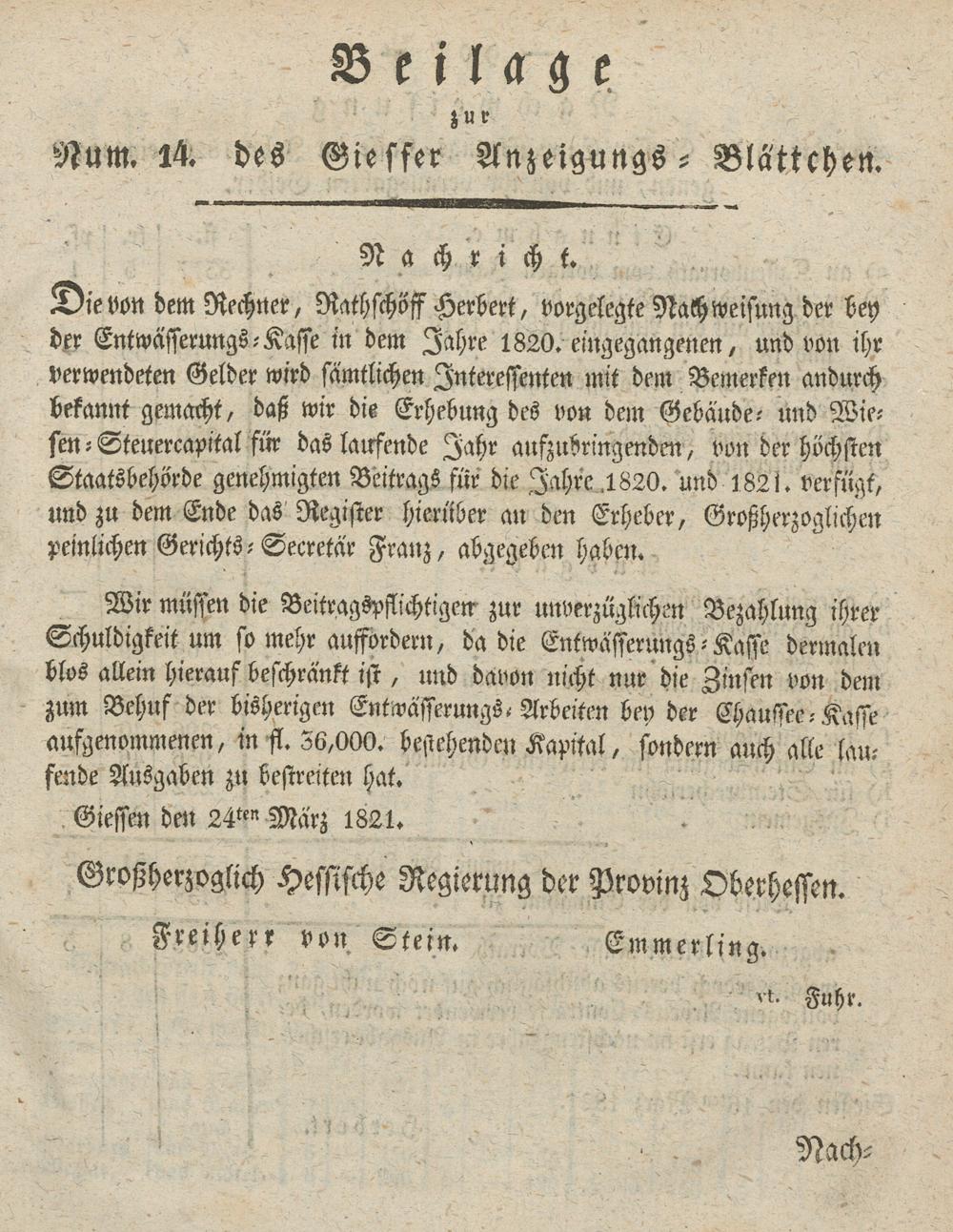 Giesser Anzeigeblatt. 1800-1839