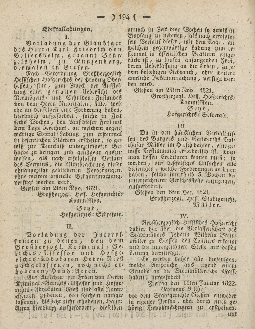 Giesser Anzeigeblatt. 1800-1839