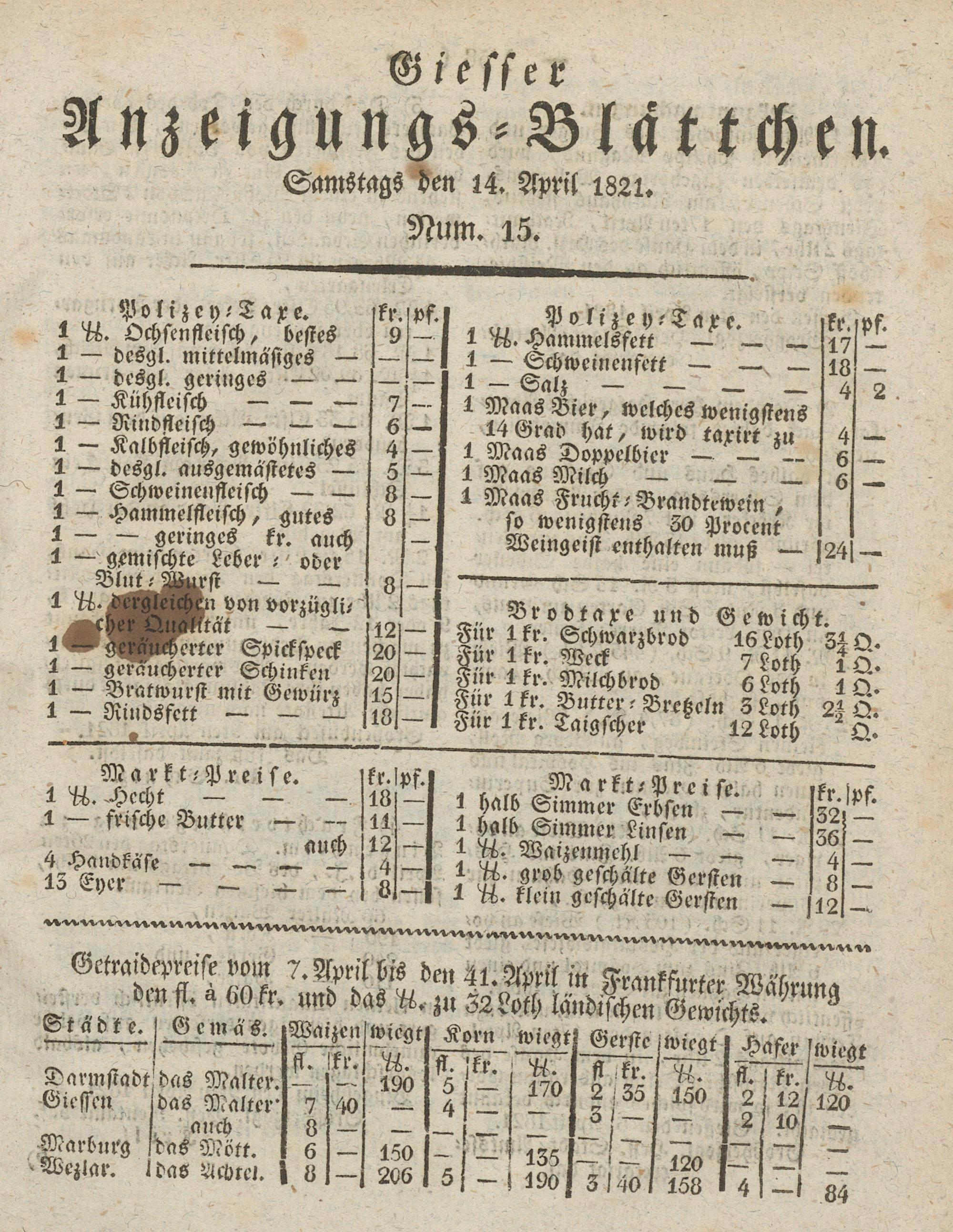 Giesser Anzeigeblatt. 1800-1839